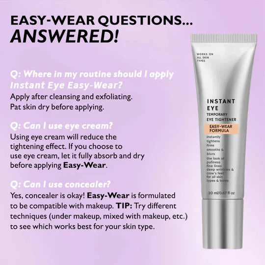 • Results in 3–7 minutes: Instantly smooths and firms under-eye bags, crow’s feet, fine lines, and wrinkles.* Clinical studies showed 100% of users saw immediate improvement in under-eye puffiness and fine lines.